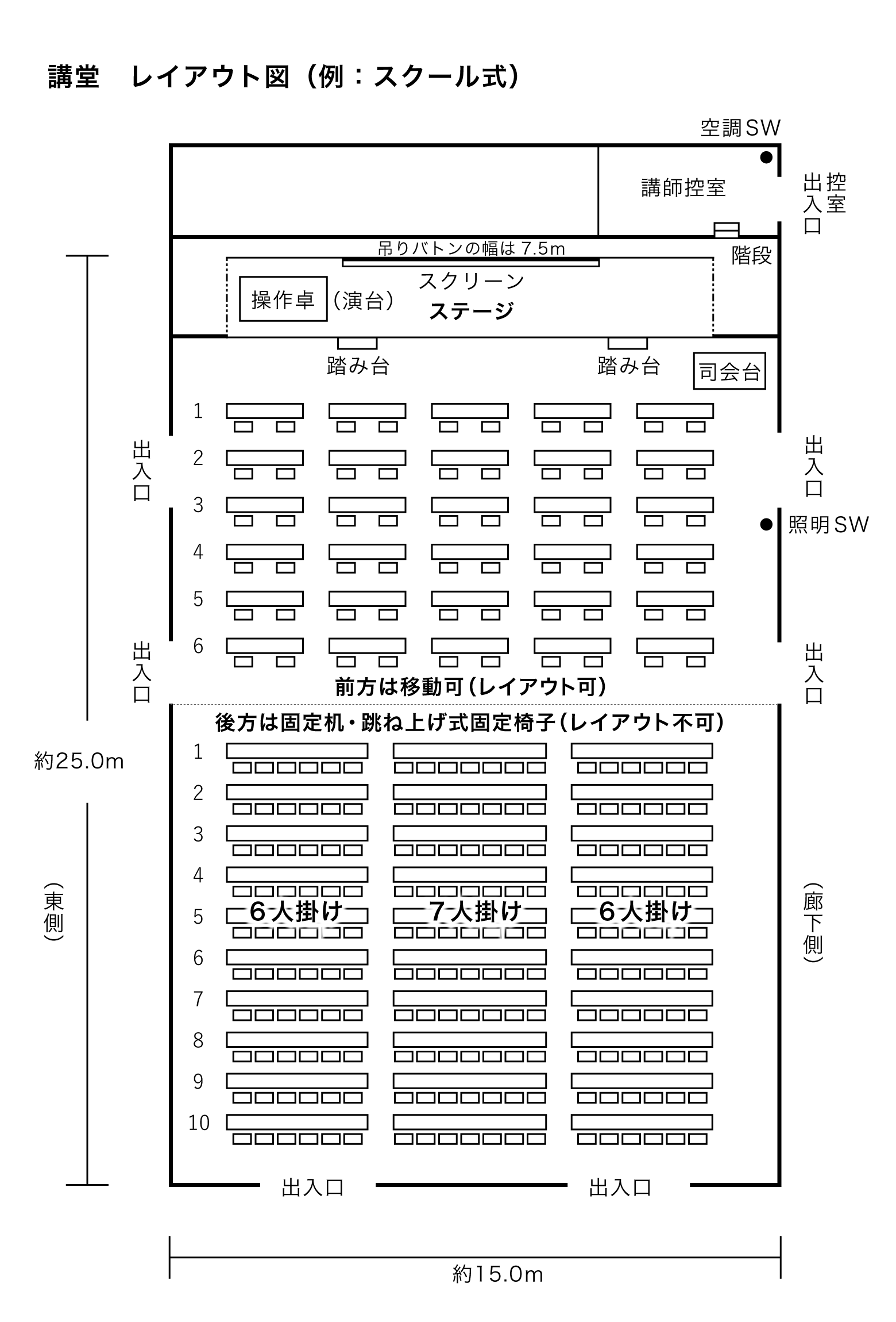 - 左列(6人掛け×10列)