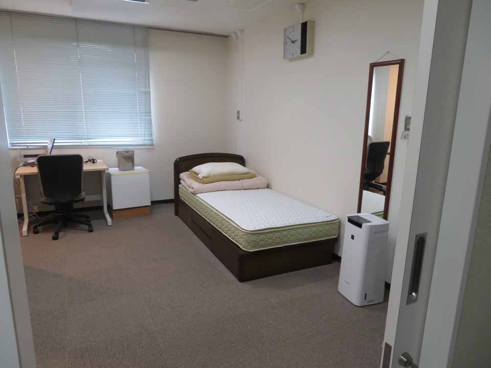 シャワー室、車椅子対応トイレ、洗面所、空気清浄機、パソコン、机、椅子、棚、ベッド、冷蔵庫、電気ポット、ロッカー(スリッパ付)、体温計、デスクスタンド、非常用持出袋 等 |